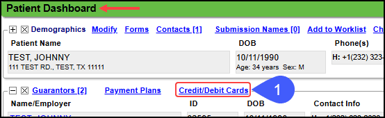 - On the Patient Dashboard, select the Credit/Debit Cards link.