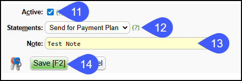 - On the Payment Plan, Statements/Notifications are set to Send Statements for the Payment Plan or to Hold Statements while the Payment Plan is active.