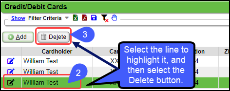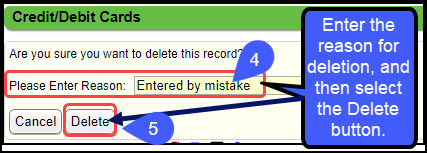 You can ONLY Delete a Charge/Debit card if it has not been used.