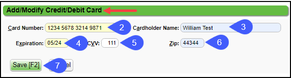The example below shows how to add a Credit/Debit Card during the process of adding a Payment Plan.