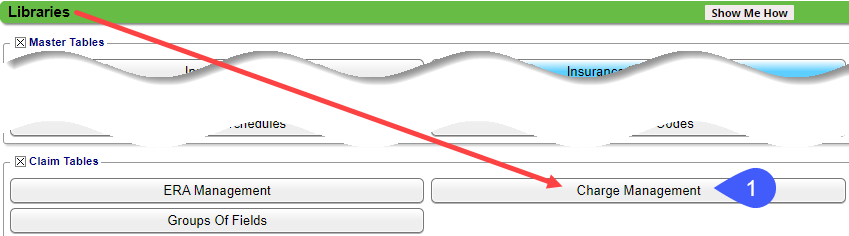 - From Libraries on the Left Side Menu, select the Charge Management button.