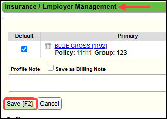 - Select Save [F2] on the Insurance/Employer Management screen.