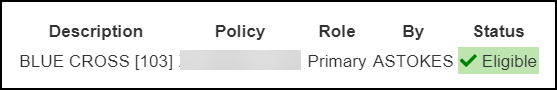 Eligibility Responses and Error Messages can be seen in multiple places throughout the System. Receiving a message other than Eligible may indicate a problem with the Insured/Policy Holder/Policy Information.