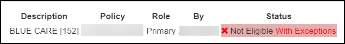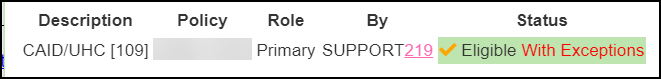 - Eligible with Exceptions: Orange check mark and needs to be reviewed.