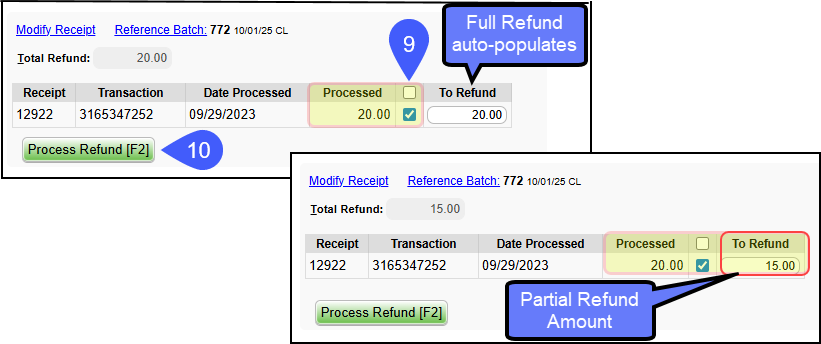 ***A Refund Receipt cannot be deleted after it has been Processed.