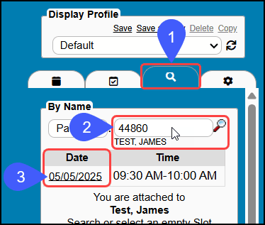Use the Search tab to find available Appointment Slots.