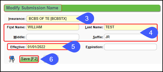 The Submission Name, William Test Jr, was added to BCBS which will be sent on the BCBS Claims, but other Payers' Claims will be sent as Bill Test Jr.