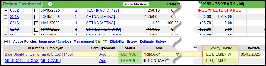 In the example above, the Patient's name in the System is Bill Test Jr, but the BCBS Insurance Card shows him as William Test Jr.