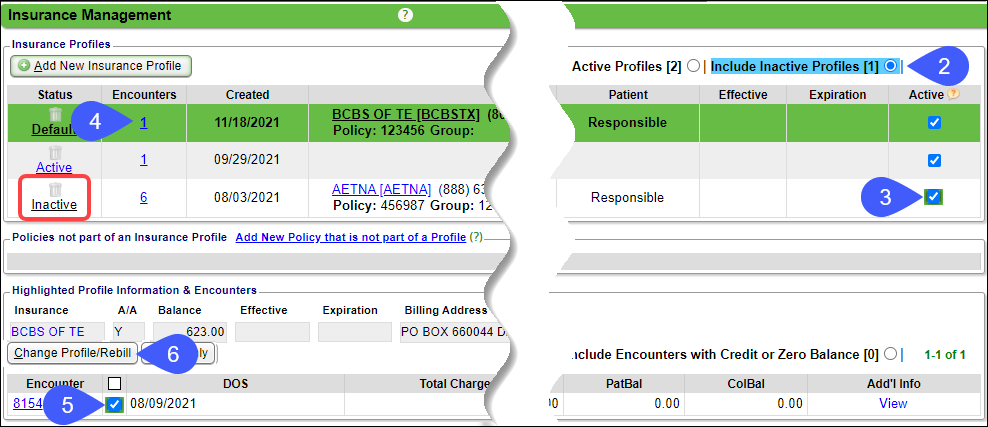 Select Include Inactive Profiles if the Insurance is not currently Active.