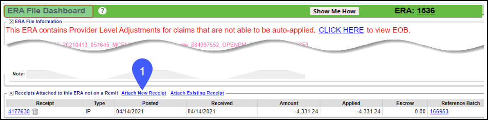 On the ERA File Dashboard screen, select the Attach a New Receipt link.