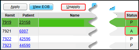 The Remit Items that are causing the Unapplied button to be grayed out can be deleted to activate the Unapply button.