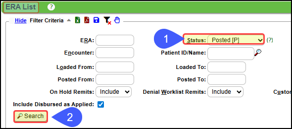 - In the Filter Criteria on the ERA List screen, choose Status, Posted.