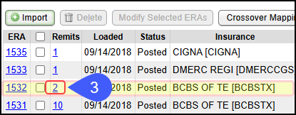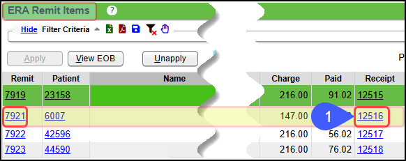 - On the ERA Remit Items screen, select the Receipt number on the Remit Item you want to unapply.