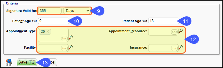 - Patient Age <=: Enter the maximum age of a Patient that should be receiving these Forms.